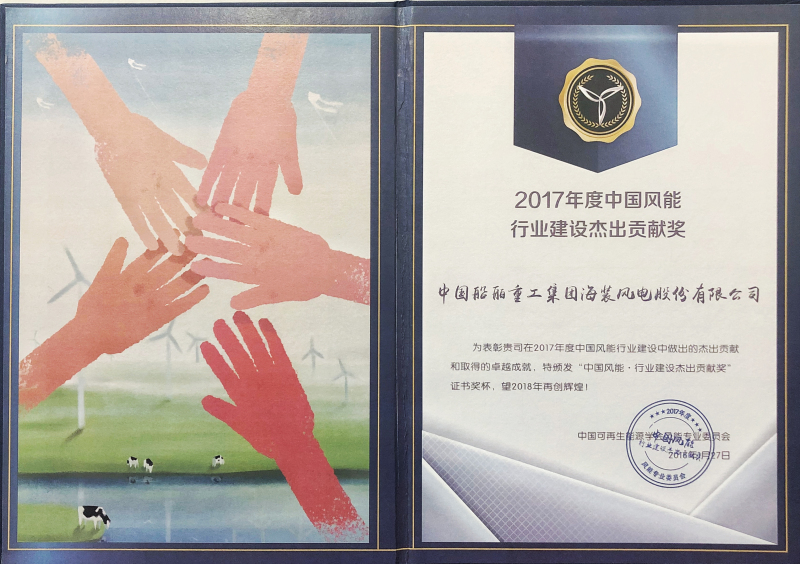 鉴于中国海装在带动风电制造业绿色体系发展、助力海上风电发展、推进质量文化建设三方面作出的突出贡献,主办方授予中国海装“2017年度中国风能行业建设杰出贡献企业”荣誉称号。