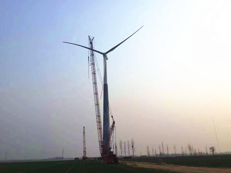 2017年7月,中国海装正式启动120米轮毂高度钢混塔筒研制项目,12月开始塔筒吊装工作。整个项目在历经九个月的精耕细作后,于2018年3月22日,完成样机吊装工作。