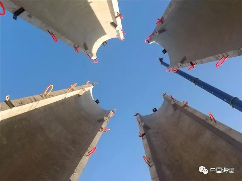 海装混塔采用体外张拉,具备施工简便、可维护性好的优点。为节省工期,李强和预应力后张施工公司一起完成了的防打搅编索方案、高准确性穿索对孔方案、整束穿索防刮碰提拉技术等方案的优化,摸索出更可靠、更高效的穿索张拉施工方式。