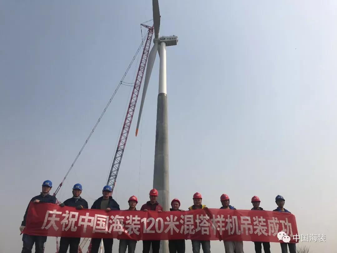 “此次混合塔筒的研发,中国海装充分调研了国内高塔筒的使用情况,结合国内的制造水平,选用了一种成熟的钢混塔筒型式,该型式的塔筒在国外已有上千台的运行业绩,技术成熟、稳定,海装结合自身机组的特点进行了完整的钢混塔筒设计、制造、吊装等工作,填补了产品空白。”研究院党支部书记、院长介绍说。