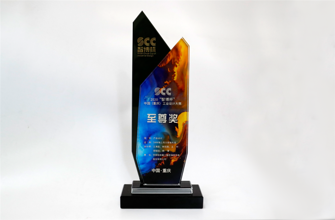 活动现场宣布,获得2020“智博杯”中国(重庆)工业设计大赛“至尊奖”的参赛单位为中国海装,获奖作品是“5MW级海上风力发电机组”,该作品聚焦高端装备、打造国之重器,整体化风电解决方案,整体外观简洁流畅,色彩涂装大气且有品质,内部机组负荷亚洲人机工效设计,易用性好、人机交互性优异。同时,自主知识产权填补空白,获得多个国内重要奖项,并较好推动了风电产业链的发展。